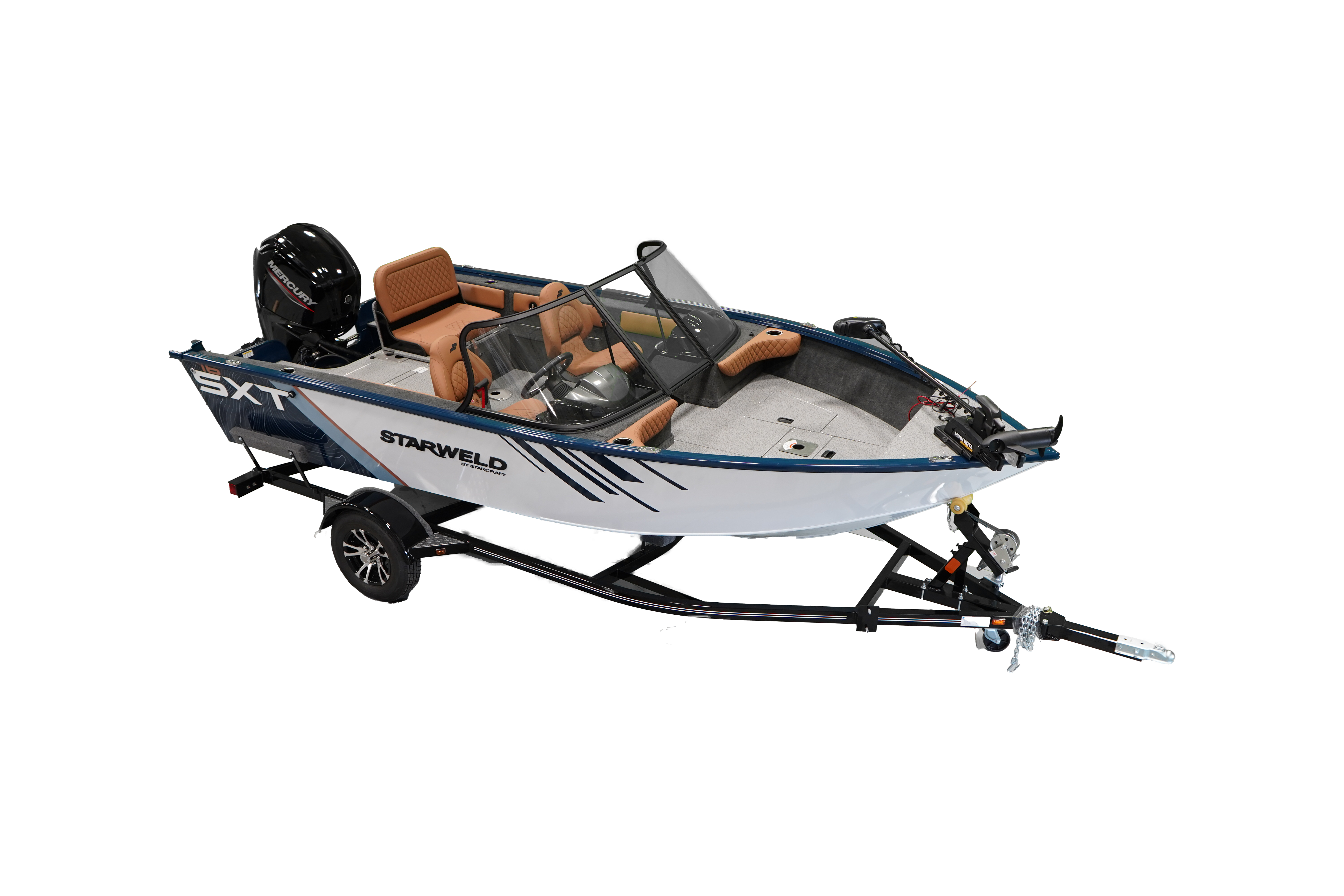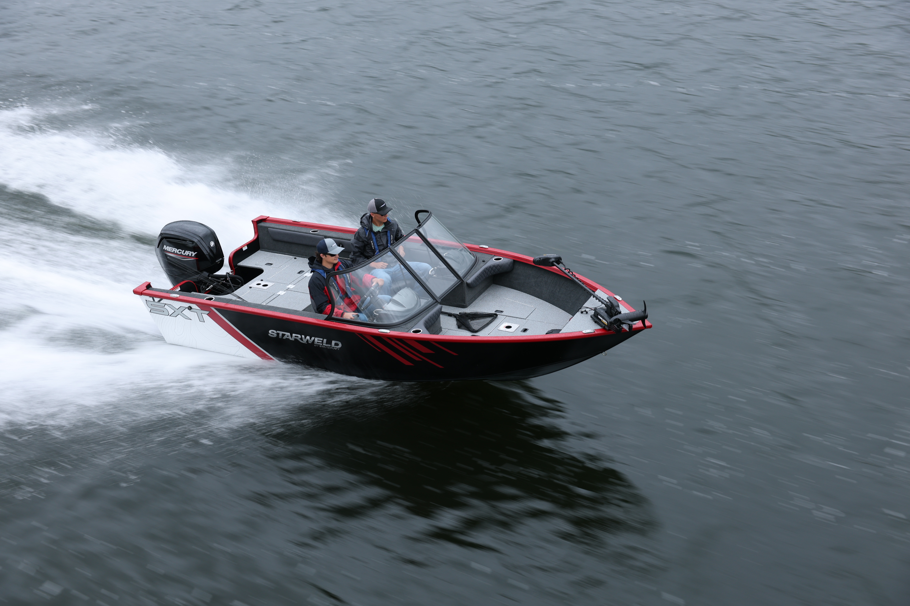 The Starweld SXT is engineered for anglers who want dependable big-water performance and premium fishing features in one durable package. Built with a heavy-gauge .100" welded aluminum hull, this boat delivers exceptional strength, stability, and long-lasting reliability. The SXT comes equipped with full vinyl casting platforms, providing easy cleanup and superior traction, along with an in-floor rod storage. A standard Humminbird Helix 7 fish finder adds advanced on-water technology, helping anglers locate and target fish with precision. For those seeking a tough, feature-rich fishing boat designed for serious action, the Starweld SXT stands out as a top choice.